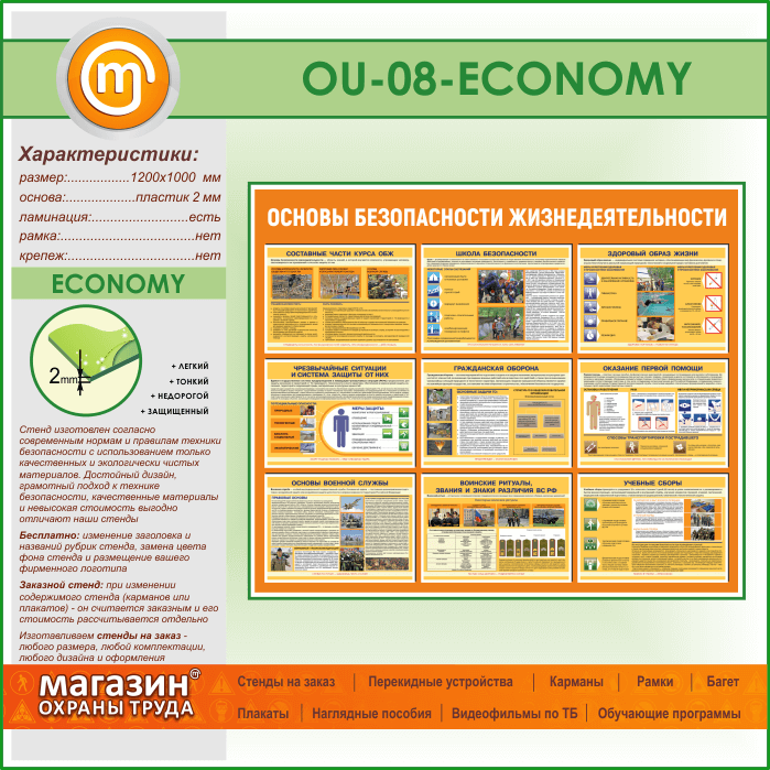 Стенд «Основы безопасности жизнедеятельности» (OU-08-ECONOMY) в Улан-Удэ купить
