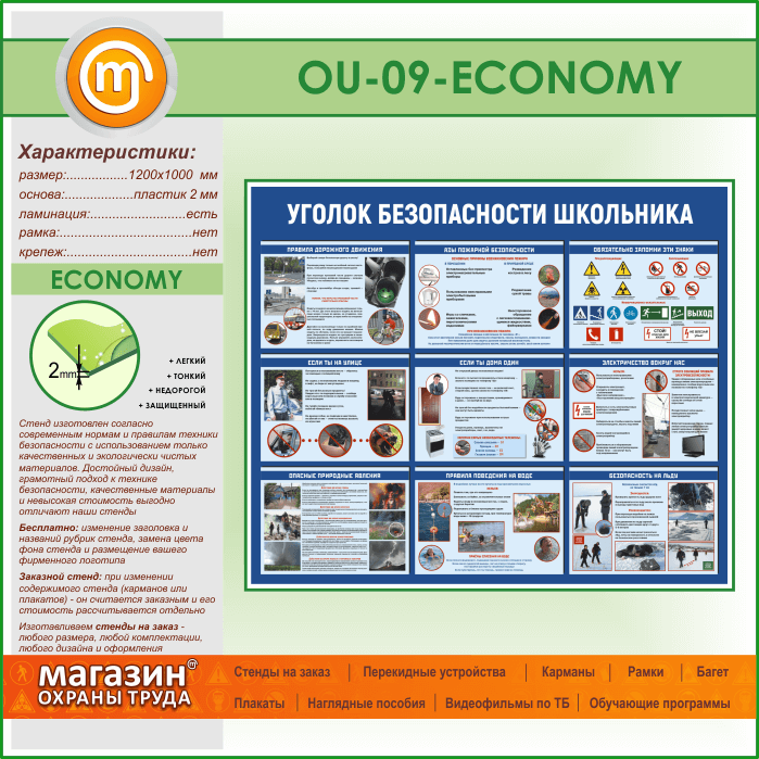 Стенд «Уголок безопасности школьника» (OU-09-ECONOMY) в Улан-Удэ купить