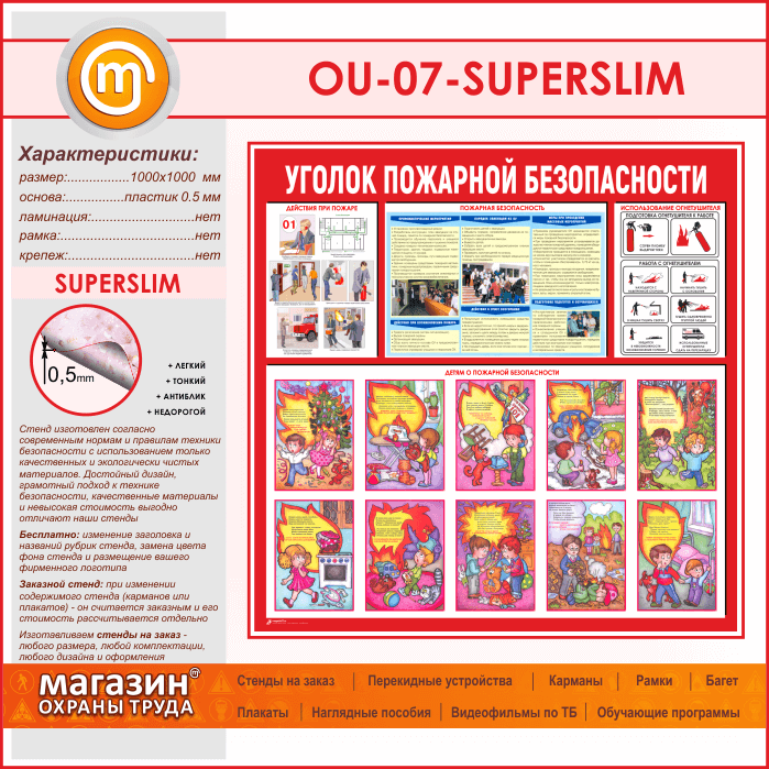 Стенд «Уголок пожарной безопасности» (OU-07-SUPERSLIM) в Улан-Удэ купить
