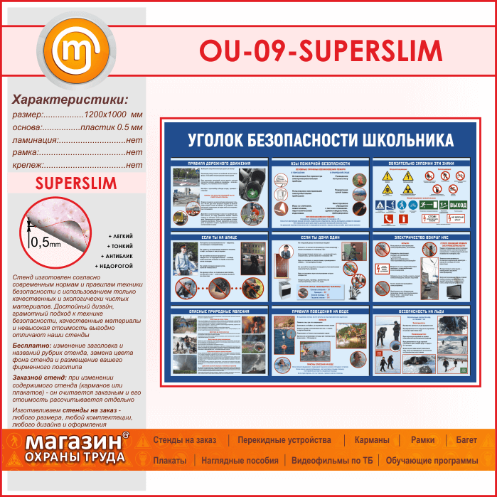 Стенд «Уголок безопасности школьника» (OU-09-SUPERSLIM) в Улан-Удэ купить
