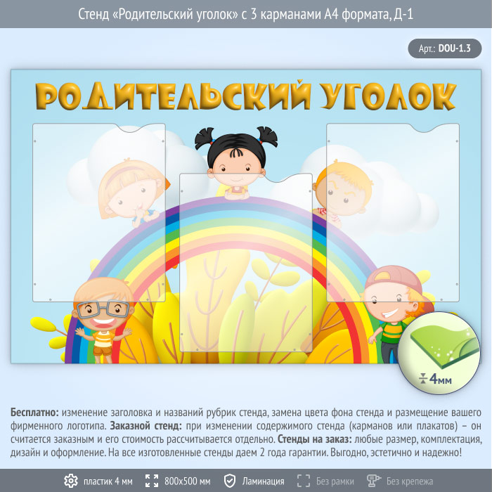Стенд «Родительский уголок» с 3 карманами А4 формата (DOU-1.3) в Улан-Удэ купить