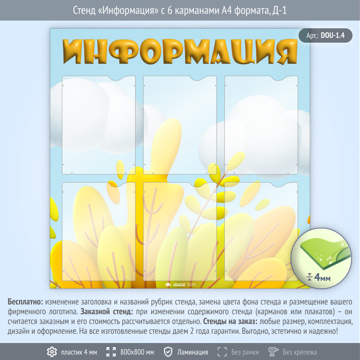 Стенд «Информация» с 6 карманами А4 формата (DOU-1.4) в Улан-Удэ купить