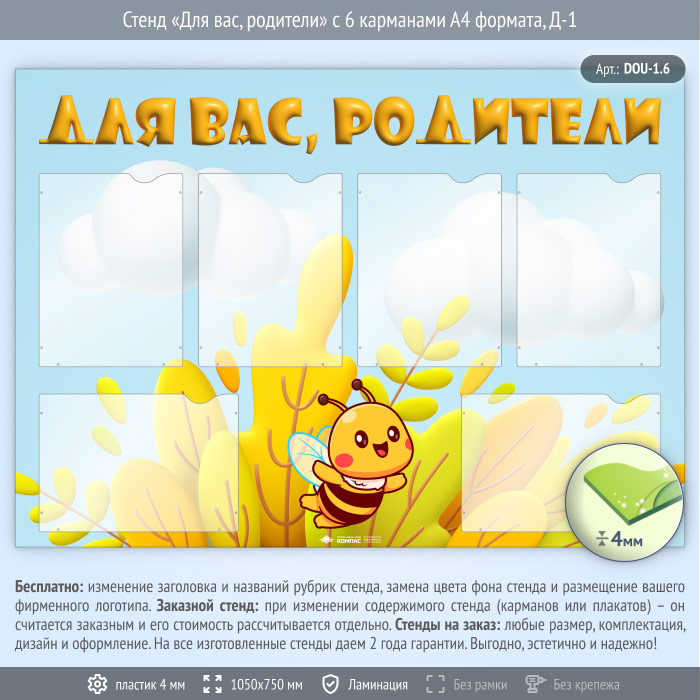 Стенд «Для вас, родители» с 6 карманами А4 формата (DOU-1.6) в Улан-Удэ купить