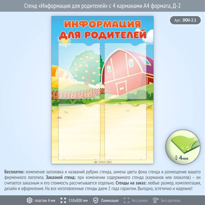 Стенд «Информация для родителей» с 4 карманами А4 формата (DOU-2.1) в Улан-Удэ купить