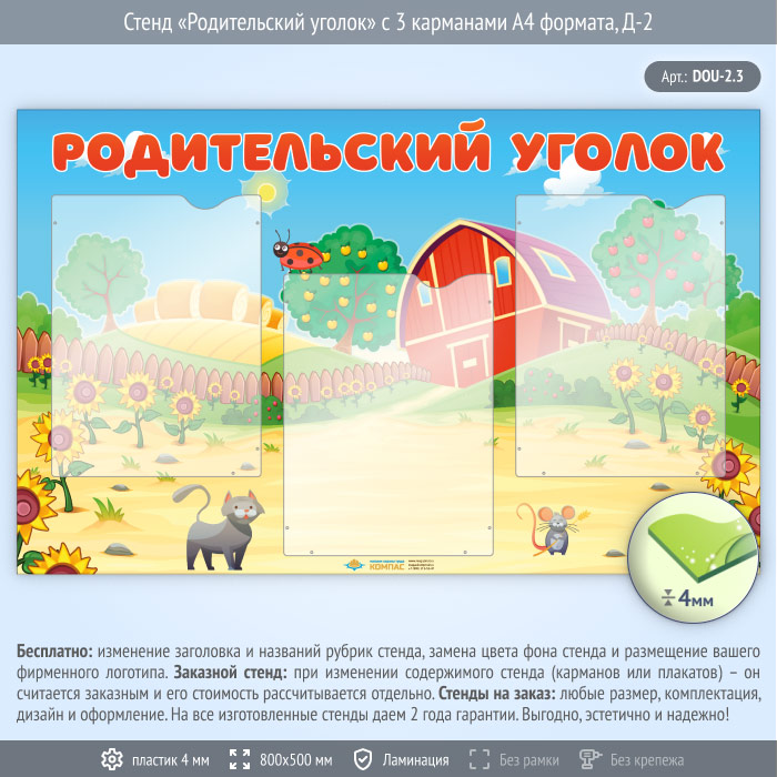 Стенд «Родительский уголок» с 3 карманами А4 формата (DOU-2.3) в Улан-Удэ купить