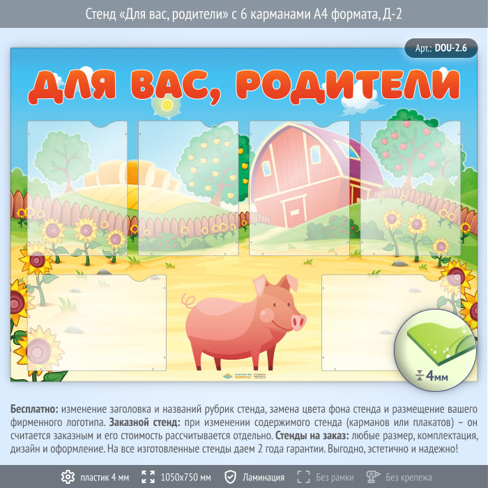 Стенд «Для вас, родители» с 6 карманами А4 формата (DOU-2.6) в Улан-Удэ купить