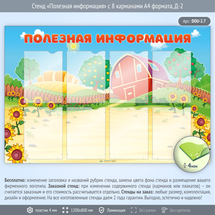Стенд «Полезная информация» с 8 карманами А4 формата (DOU-2.7) в Улан-Удэ купить