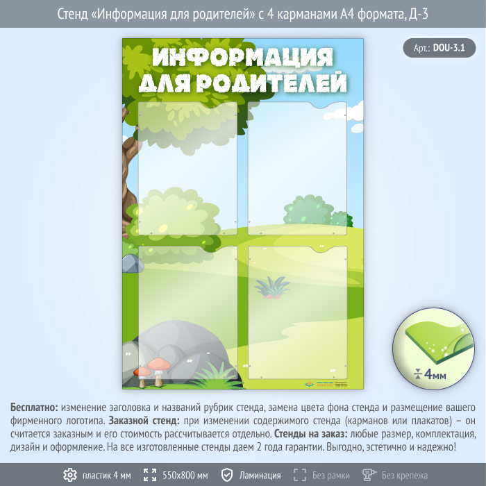 Стенд «Информация для родителей» с 4 карманами А4 формата (DOU-3.1) в Улан-Удэ купить