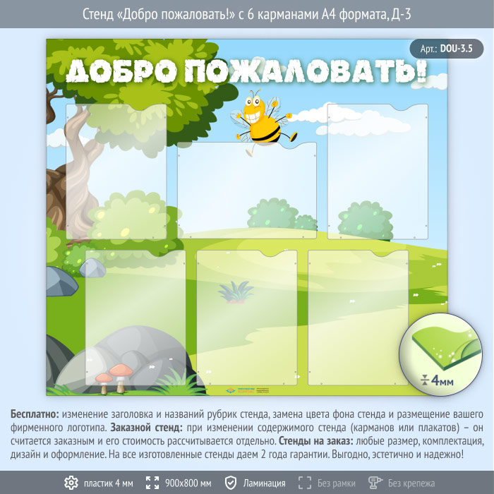 Стенд «Добро пожаловать!» с 6 карманами А4 формата (DOU-3.5) в Улан-Удэ купить