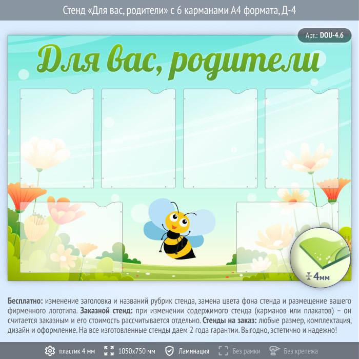 Стенд «Для вас, родители» с 6 карманами А4 формата (DOU-4.6) в Улан-Удэ купить