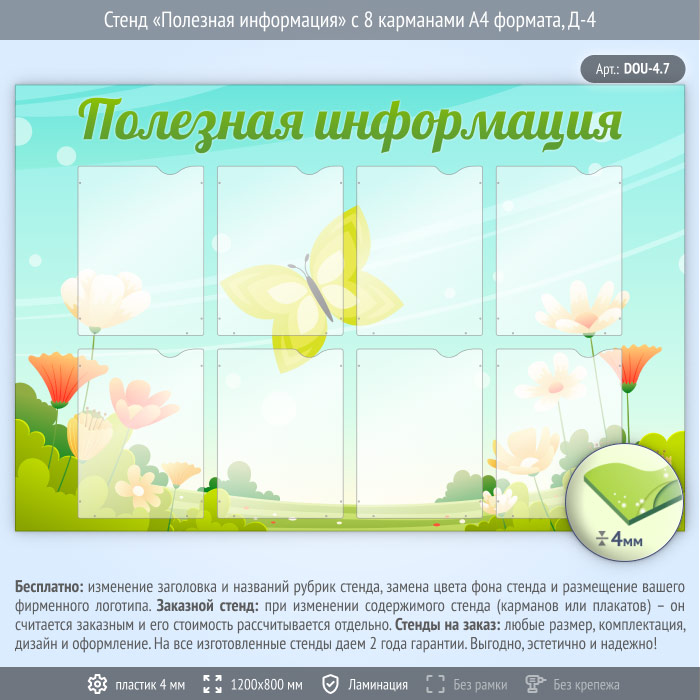 Стенд «Полезная информация» с 8 карманами А4 формата (DOU-4.7) в Улан-Удэ купить