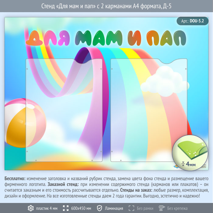 Стенд «Для мам и пап» с 2 карманами А4 формата (DOU-5.2) в Улан-Удэ купить