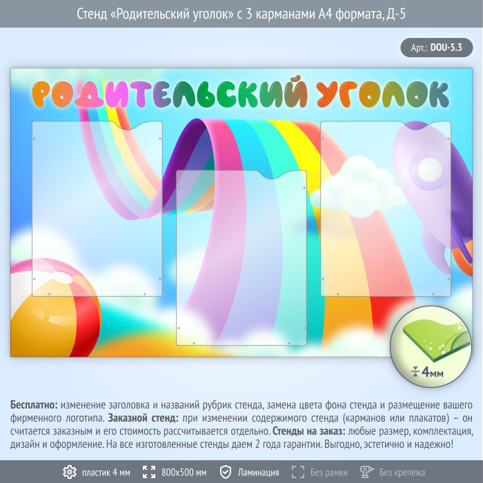 Стенд «Родительский уголок» с 3 карманами А4 формата (DOU-5.3) в Улан-Удэ купить