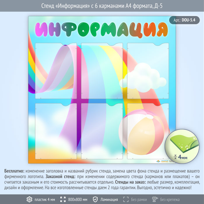 Стенд «Информация» с 6 карманами А4 формата (DOU-5.4) в Улан-Удэ купить