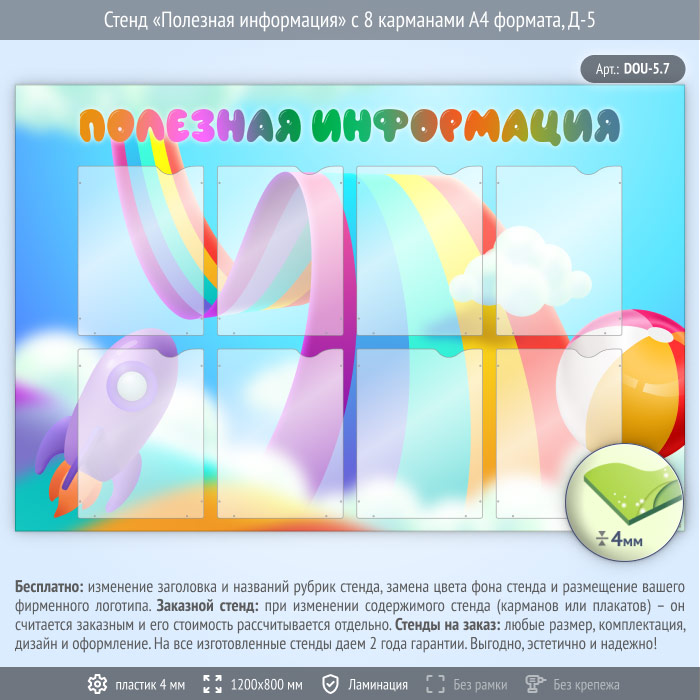 Стенд «Полезная информация» с 8 карманами А4 формата (DOU-5.7) в Улан-Удэ купить