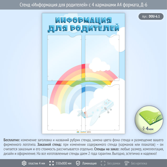 Стенд «Информация для родителей» с 4 карманами А4 формата (DOU-6.1) в Улан-Удэ купить