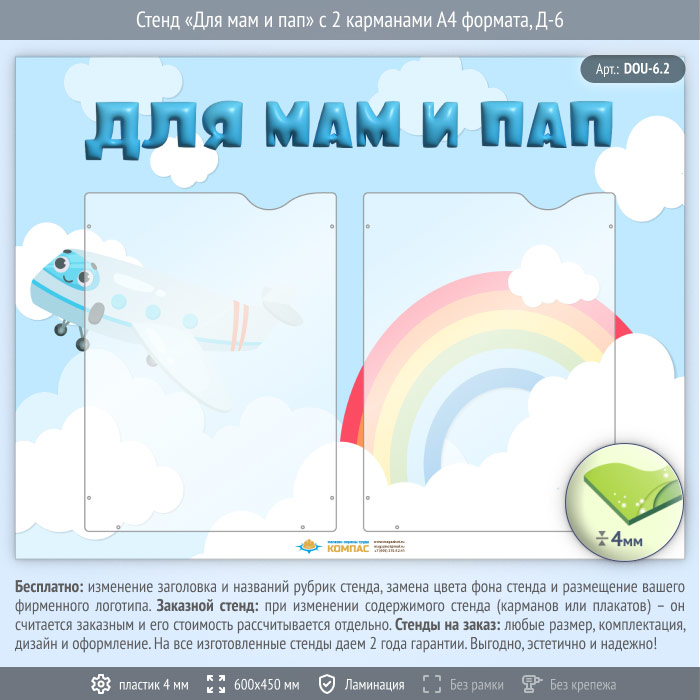 Стенд «Для мам и пап» с 2 карманами А4 формата (DOU-6.2) в Улан-Удэ купить