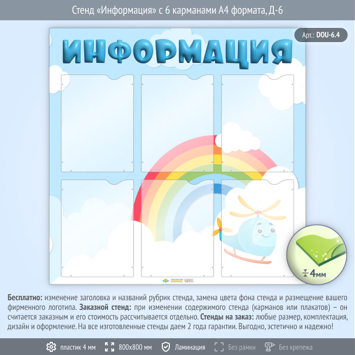 Стенд «Информация» с 6 карманами А4 формата (DOU-6.4) в Улан-Удэ купить