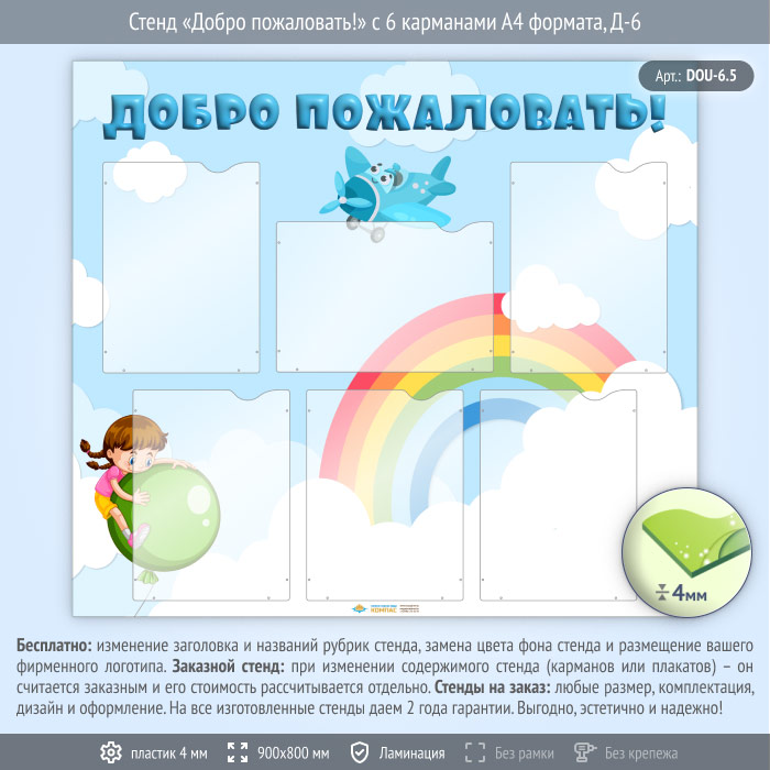 Стенд «Добро пожаловать!» с 6 карманами А4 формата (DOU-6.5) в Улан-Удэ купить
