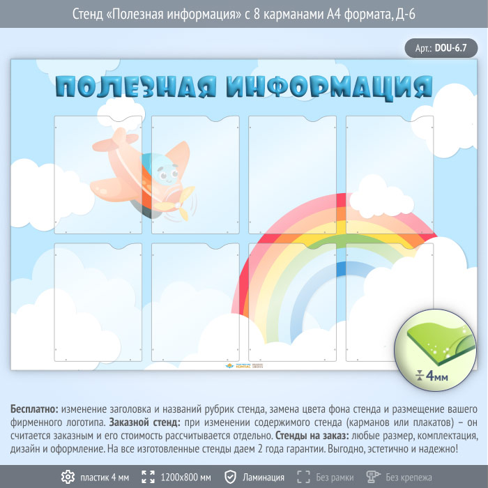 Стенд «Полезная информация» с 8 карманами А4 формата (DOU-6.7) в Улан-Удэ купить