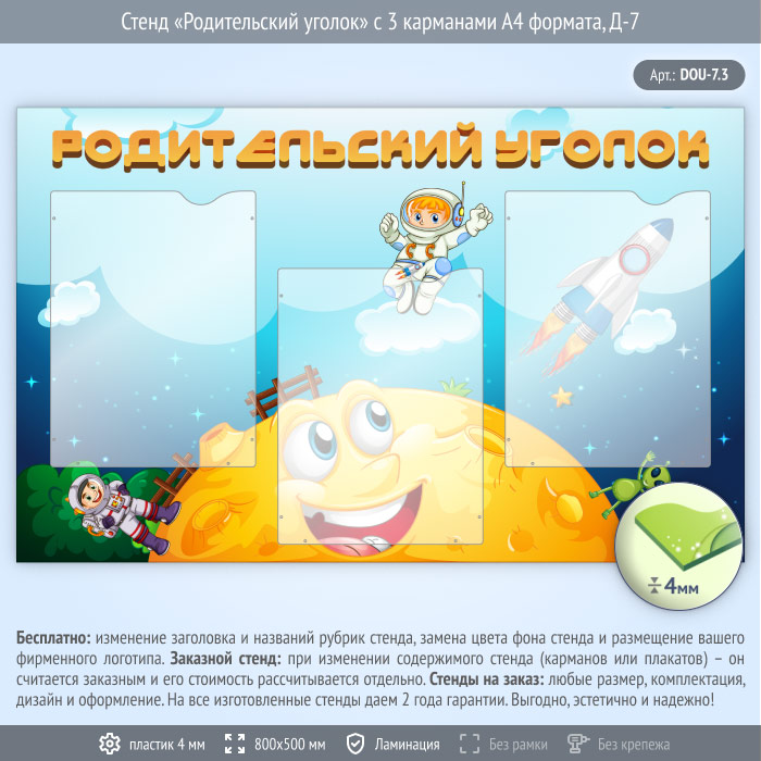 Стенд «Родительский уголок» с 3 карманами А4 формата (DOU-7.3) в Улан-Удэ купить