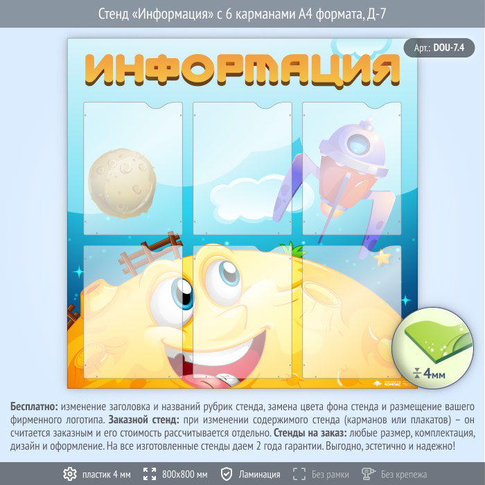 Стенд «Информация» с 6 карманами А4 формата (DOU-7.4) в Улан-Удэ купить
