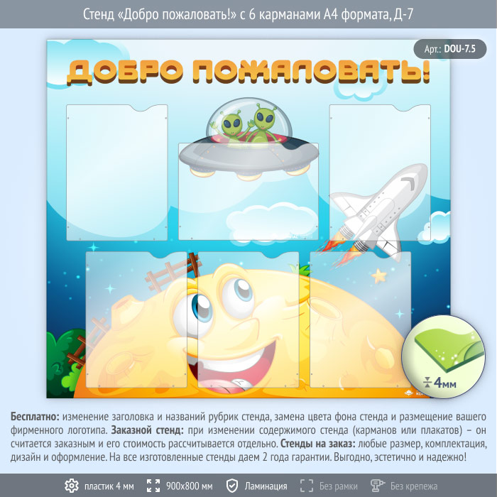 Стенд «Добро пожаловать!» с 6 карманами А4 формата (DOU-7.5) в Улан-Удэ купить