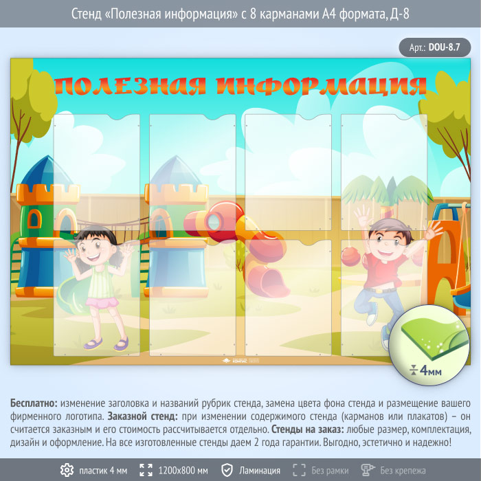 Стенд «Полезная информация» с 8 карманами А4 формата (DOU-8.7) в Улан-Удэ купить