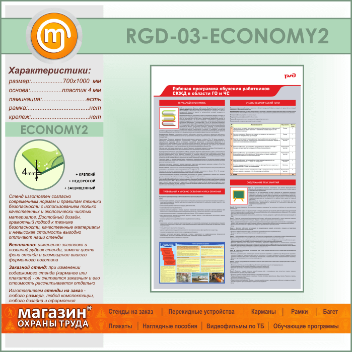 Стенд «Рабочая программа обучения работников СКЖД в области ГО и ЧС» (RGD-03-ECONOMY2) в Улан-Удэ купить