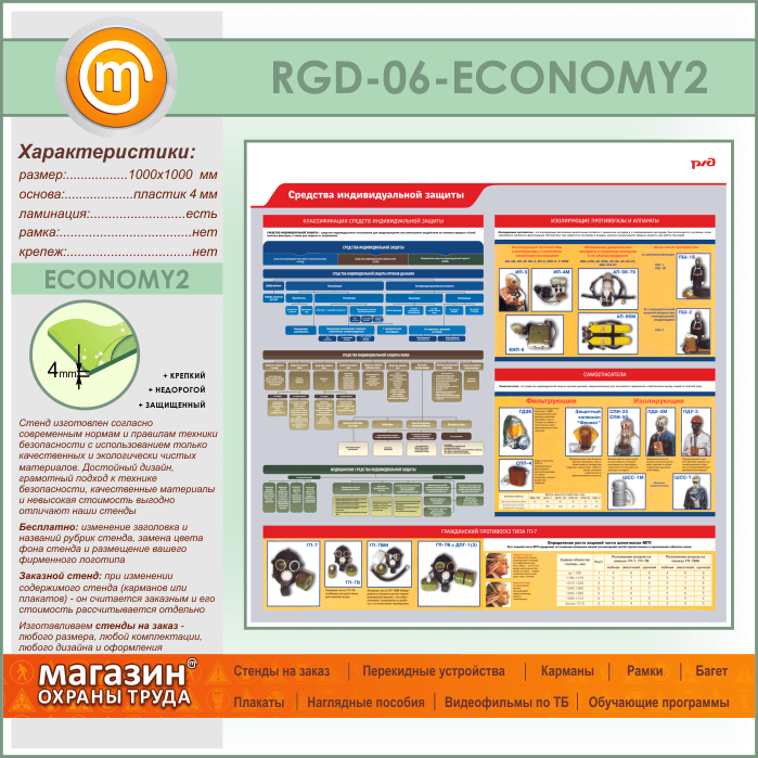 Стенд «Средства индивидуальной защиты» (RGD-06-ECONOMY2) в Улан-Удэ купить