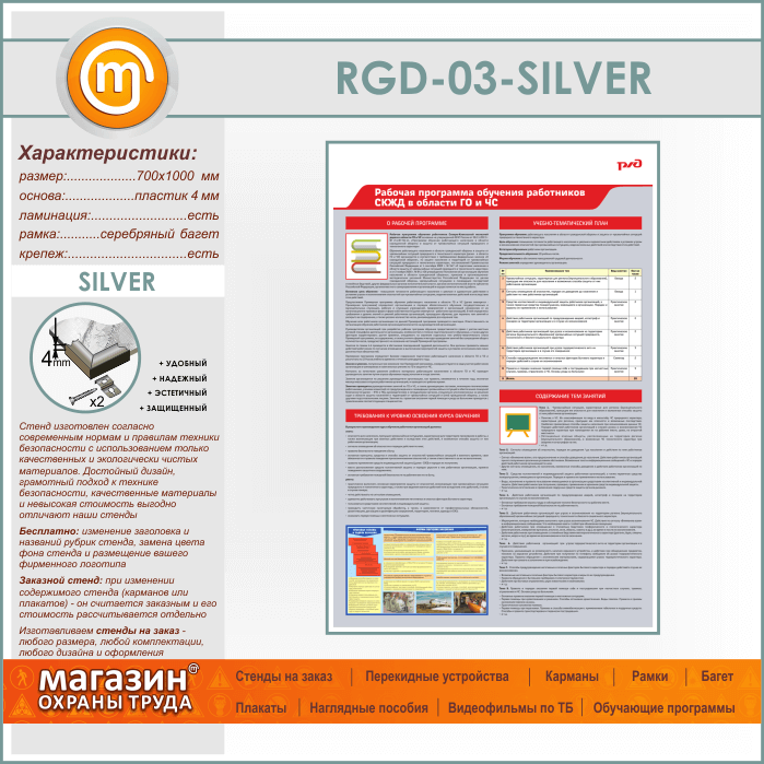 Стенд «Рабочая программа обучения работников СКЖД в области ГО и ЧС» (RGD-03-SILVER) в Улан-Удэ купить