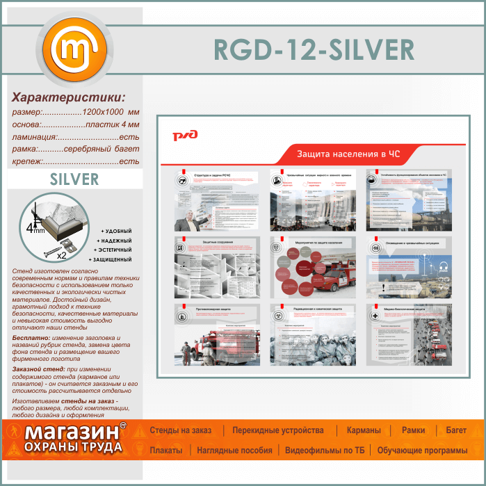 Стенд «Защита населения в ЧС» (RGD-12-SILVER) в Улан-Удэ купить