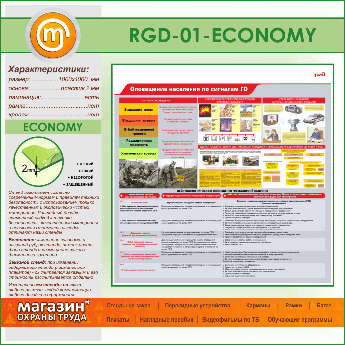 Стенд «Оповещение населения по сигналам ГО» (RGD-01-ECONOMY) в Улан-Удэ купить