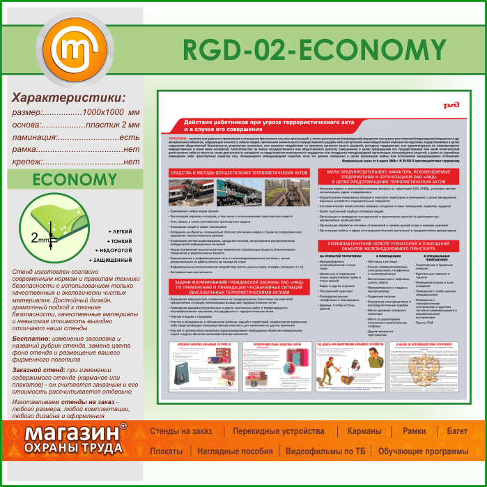Стенд «Действия работников при угрозе совершения террористического акта и в случае его совершения» (RGD-02-ECONOMY) в Улан-Удэ купить