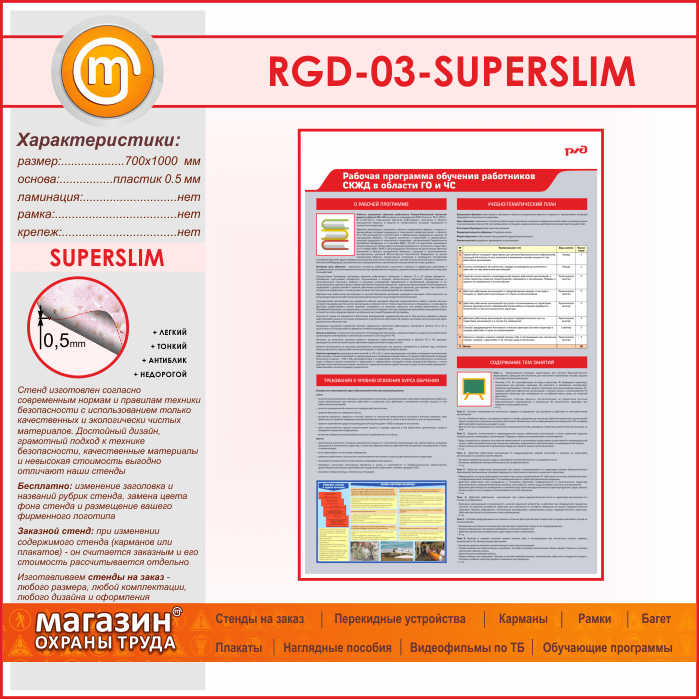 Стенд «Рабочая программа обучения работников СКЖД в области ГО и ЧС» (RGD-03-SUPERSLIM) в Улан-Удэ купить