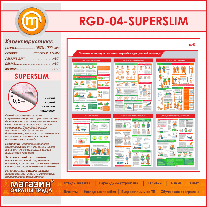 Стенд «Правила и порядок оказания первой медицинской помощи» (RGD-04-SUPERSLIM) в Улан-Удэ купить