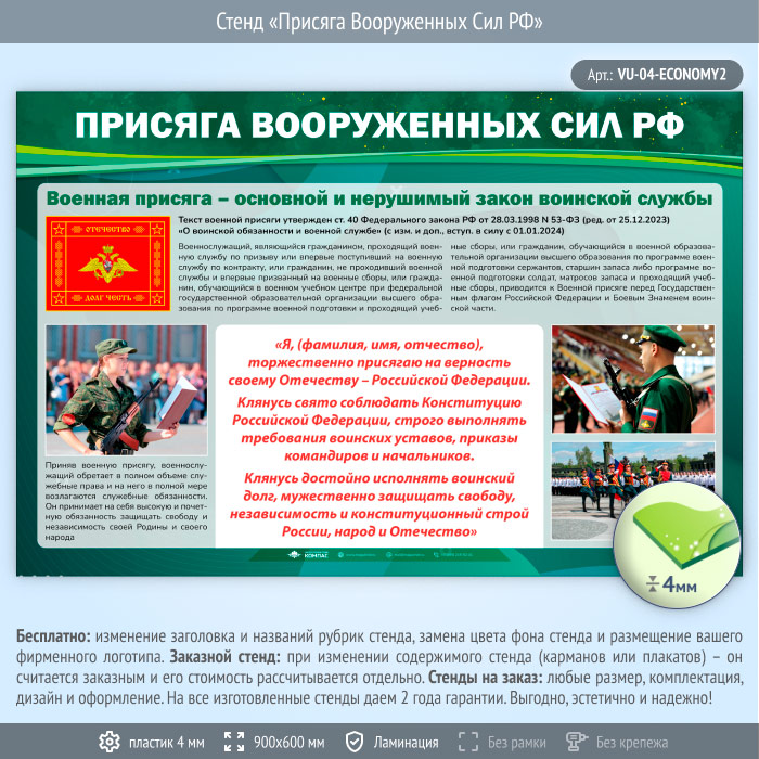 Стенд «Присяга Вооруженных Сил РФ» (VU-04-ECONOMY2) в Улан-Удэ купить