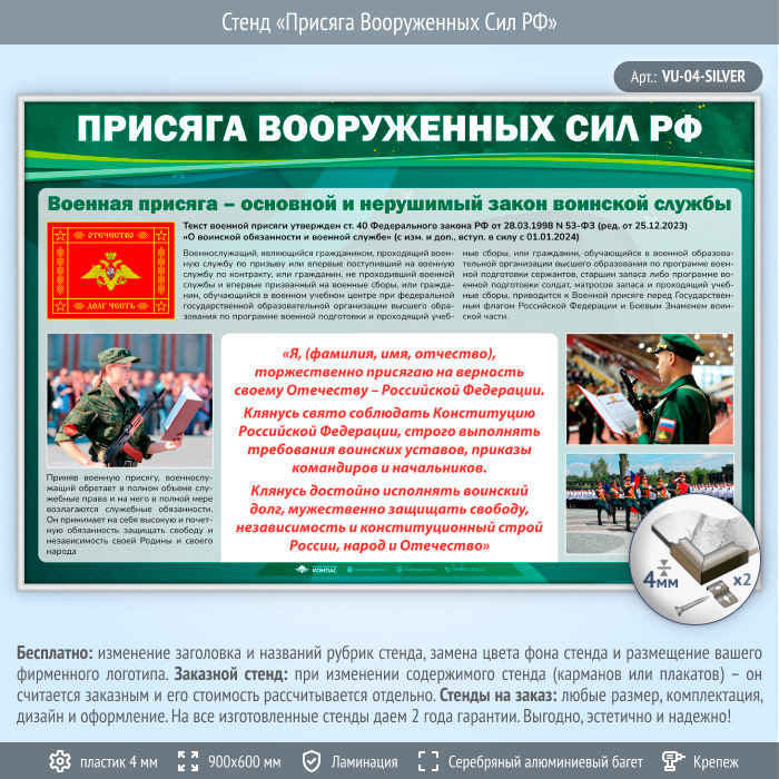 Стенд «Присяга Вооруженных Сил РФ» (VU-04-SILVER) в Улан-Удэ купить