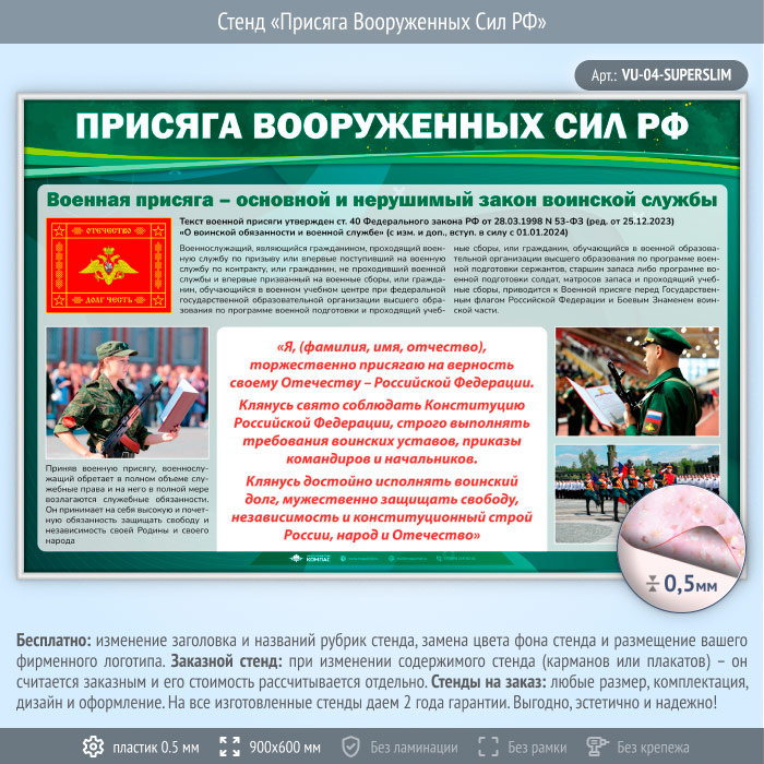Стенд «Присяга Вооруженных Сил РФ» (VU-04-SUPERSLIM) в Улан-Удэ купить
