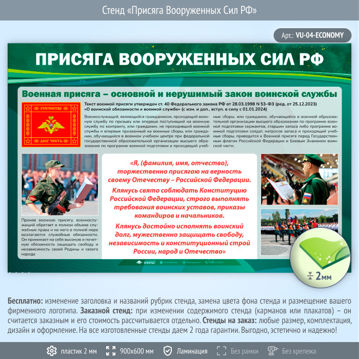 Стенд «Присяга Вооруженных Сил РФ» (VU-04-ECONOMY) в Улан-Удэ купить