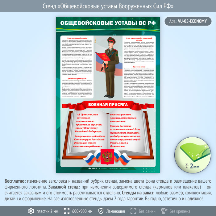 Стенд «Общевойсковые уставы Вооружённых Сил РФ» (VU-05-ECONOMY) в Улан-Удэ купить