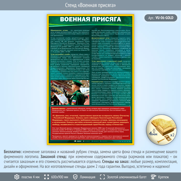 Стенд «Военная присяга» (VU-06-GOLD) в Улан-Удэ купить