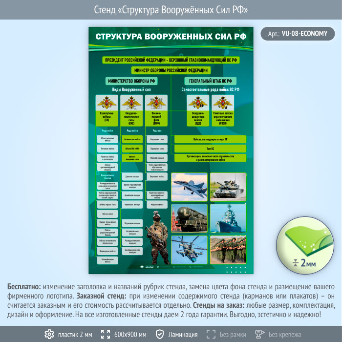 Стенд «Структура Вооружённых Сил РФ» (VU-08-ECONOMY) в Улан-Удэ купить