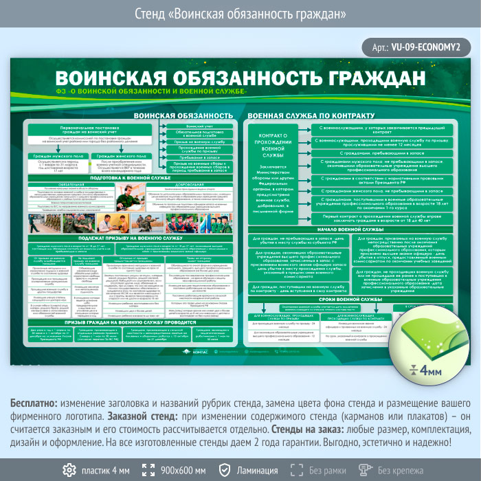 Стенд «Воинская обязанность граждан» (VU-09-ECONOMY2) в Улан-Удэ купить
