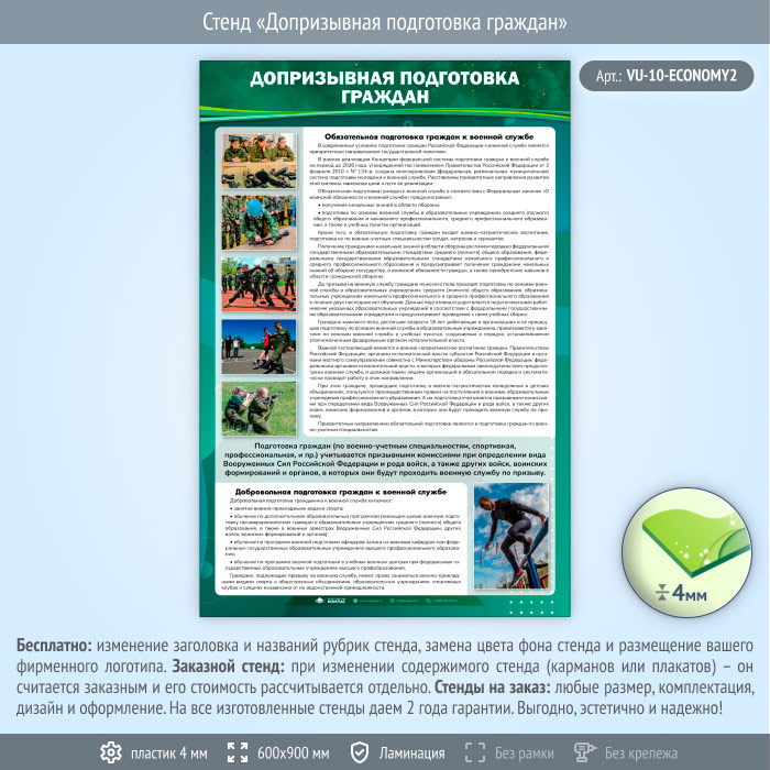 Стенд «Допризывная подготовка граждан» (VU-10-ECONOMY2) в Улан-Удэ купить