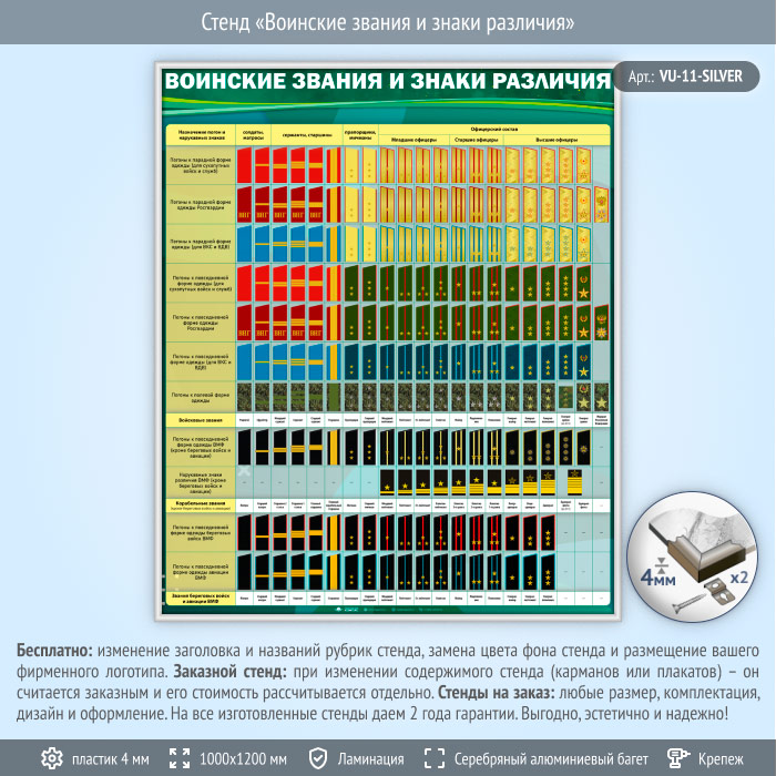 Стенд «Воинские звания и знаки различия» (VU-11-SILVER) в Улан-Удэ купить