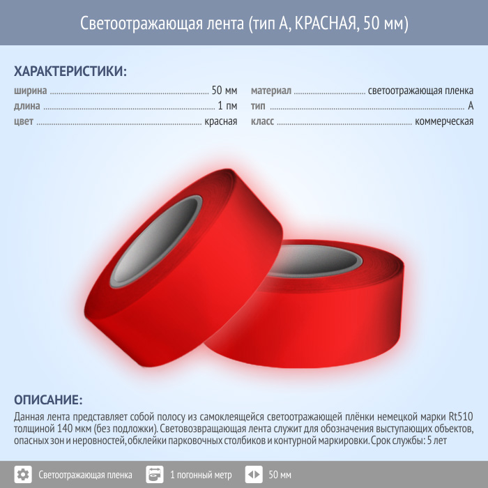 Светоотражающая однородная лента (тип А, КРАСНАЯ, 50 мм х 1 п.м.) в Улан-Удэ купить