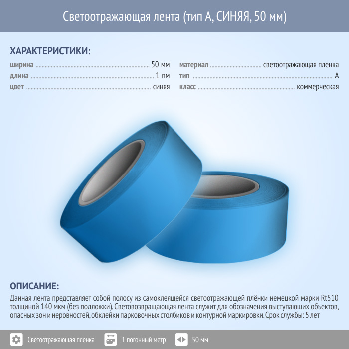 Светоотражающая однородная лента (тип А, СИНЯЯ, 50 мм х 1 п.м.) в Улан-Удэ купить