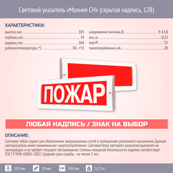 Световой указатель Молния СН (скрытая надпись, 12В) в Улан-Удэ купить
