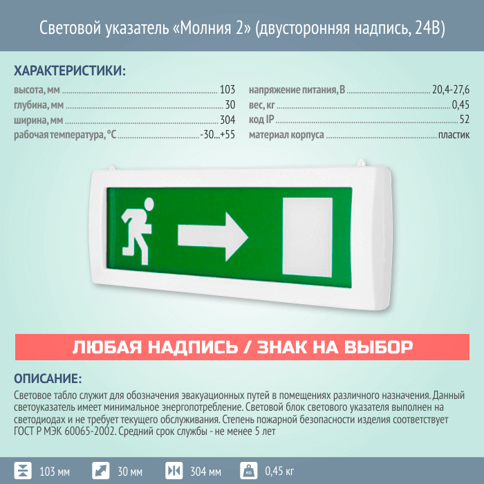 Световой указатель Молния 2 (двусторонняя надпись, 24В) в Улан-Удэ купить